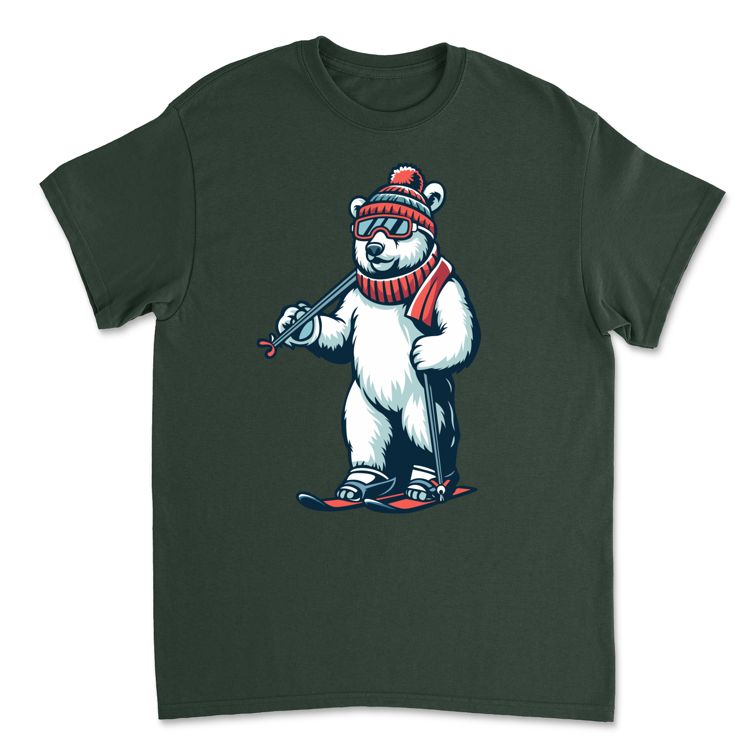Męska koszulka niedźwiedź polarny na nartach